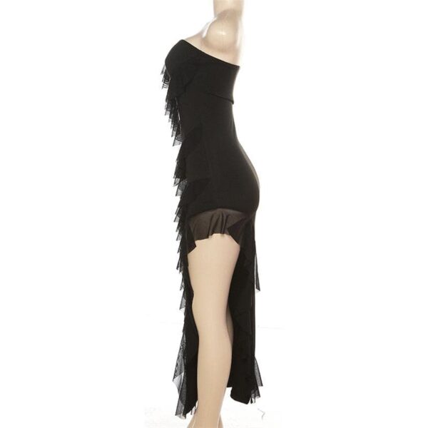 Be the first to review “Irregular backless solid ruffle slit tube midi dress”