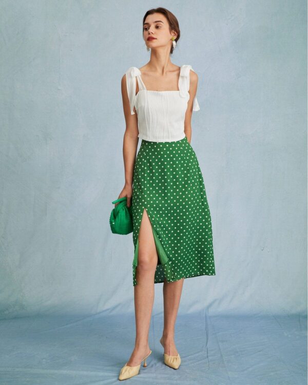 Be the first to review “The Green High Waisted Polka Dot Slit Midi Skirt”